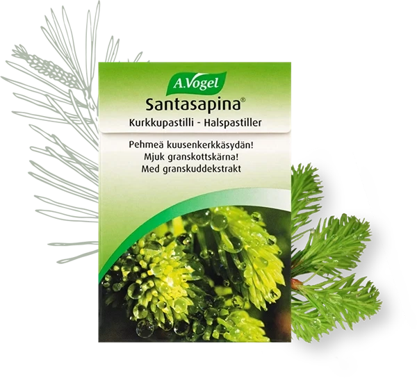 Santasapina Halspastiller fra A. Vogel kombinerer naturlige ingredienser med en forfriskende smag af gran, honning og mentol. Perfekte til at friske ånde op, klare halsen eller blot give en behagelig smagsoplevelse i løbet af dagen. Med pressesaft og ekstrakt fra granskud fra schweiziske grantræer i Alperne er disse pastiller et naturligt og velsmagende valg uden kunstige aromaer, søde- eller farvestoffer.