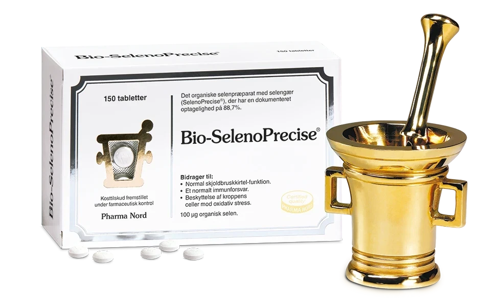 Bio-SelenoPrecise er det originale selenpræparat med 100 mcg af den veldokumenterede og patenterede SelenoPrecise selengær. Dansk produceret af Pharma Nord.