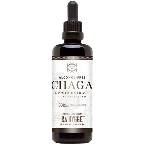 Boost dit velvære med Rå Hygge Chaga Concentrated Liquid Extract! Denne alkoholfri tinktur, fremstillet af 350 g certificeret økologisk Chaga (Inonotus Obliquus), er udvundet gennem dobbelt ekstraktion for maksimal styrke og renhed.