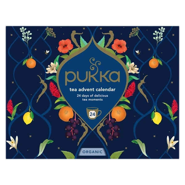 24 tebreve. Christmas Calendar Pukka økologisk julekalender med 24 Pukka tebreve i smukt design giver 1 ny spændende smag hver dag. NatureSource.