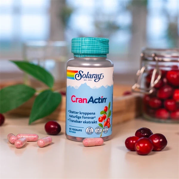 60 vegetabilske kapsler. CranActin Tranebær Ekstrakt Solaray er et kosttilskud støtter kroppens naturlige forsvar og er tilsat C-vitamin. Også velegnet til vegetarer og veganere og andre der ikke ønsker animalske stoffer. Natur Energi.