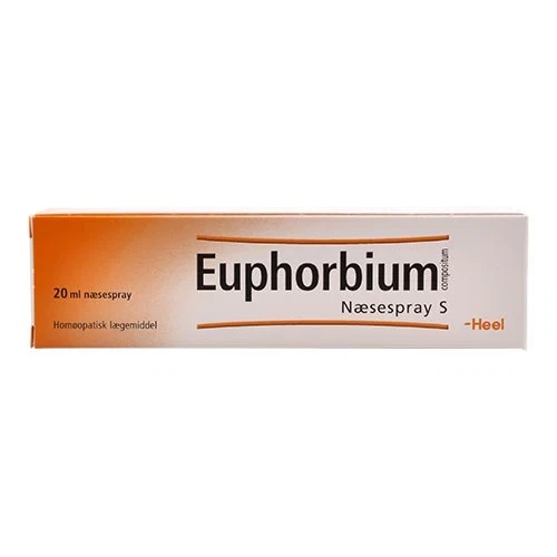 20 ml. Euphorbium Næsespray Heel er en næsespray, der er lavet, så den lukker helt tæt, hvilket betyder at sprayen ikke skal smides væk efter et par måneder, men har en holdbarhed på 3 år. Kan også bruges til babyer. Biologische Heilmittel Heel GmbH.