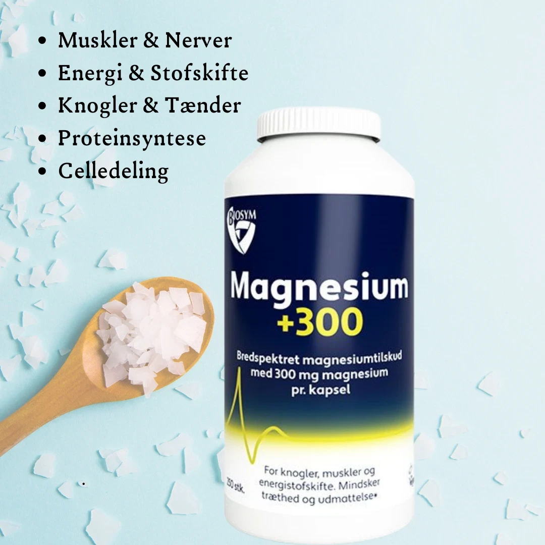 Magnesium +300 Biosym indeholder 2 effektive magnesiumkilder.