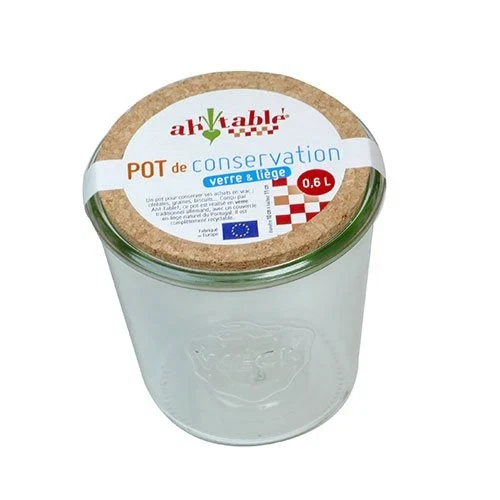 Opbevaringsglas med korklåg (Ø 10 cm H 11 cm) – multifunktionelt til køkken, kontor og badeværelse. Tåler ovn, mikro og fryser (uden låg), genanvendeligt og bæredygtigt.